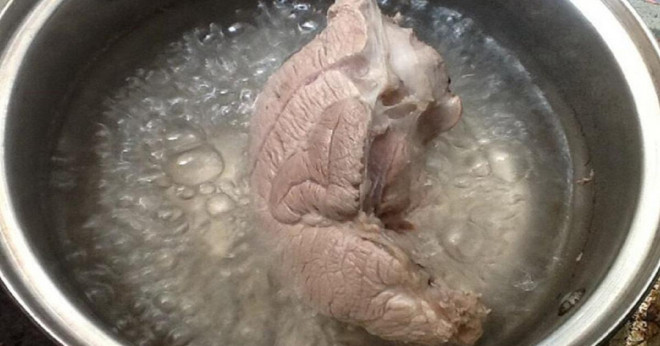 Đợi nước sôi hãy cho thịt chân giò vào luộc