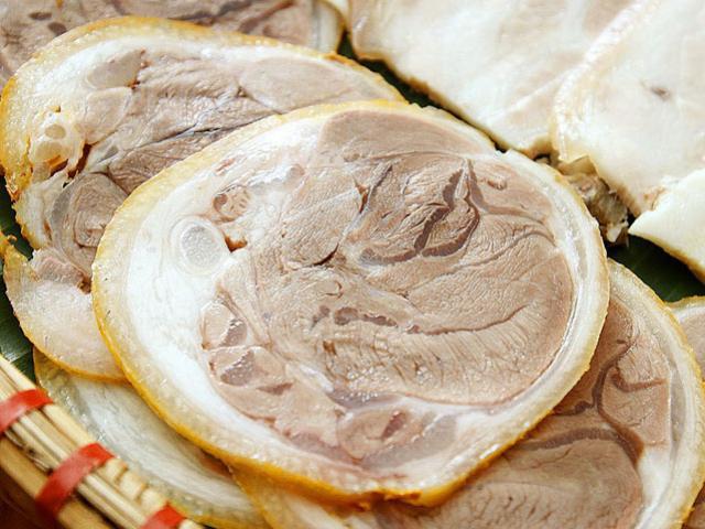 Thịt chân giò luộc được thái khoanh đẹp mắt